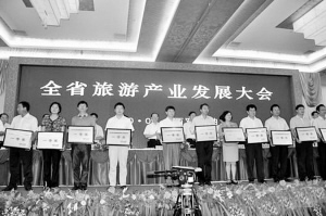大會授予昆明市、昭通市、曲靖市、玉溪市、保山市、大理市、麗江市、西雙版納州等13個州市為“2009年度云南旅游經(jīng)濟指標目標責任考核一等獎”,各獎15萬元。