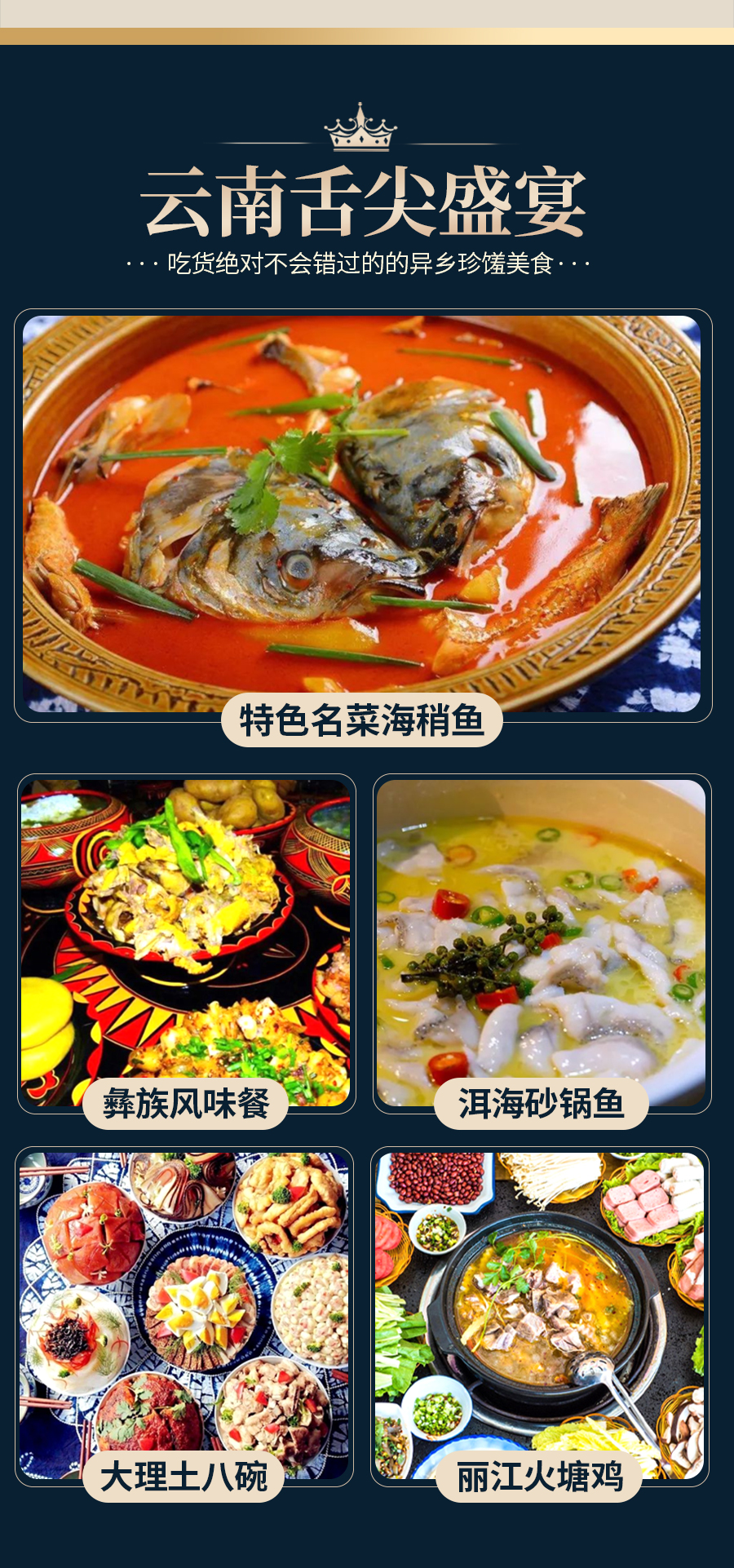 ☆餐飲提高:餐標50元/人/餐、楚雄品嘗云南特色 “野生菌火鍋”,大理品嘗“土八碗”,麗江納西喜宴,享盡云南美食。