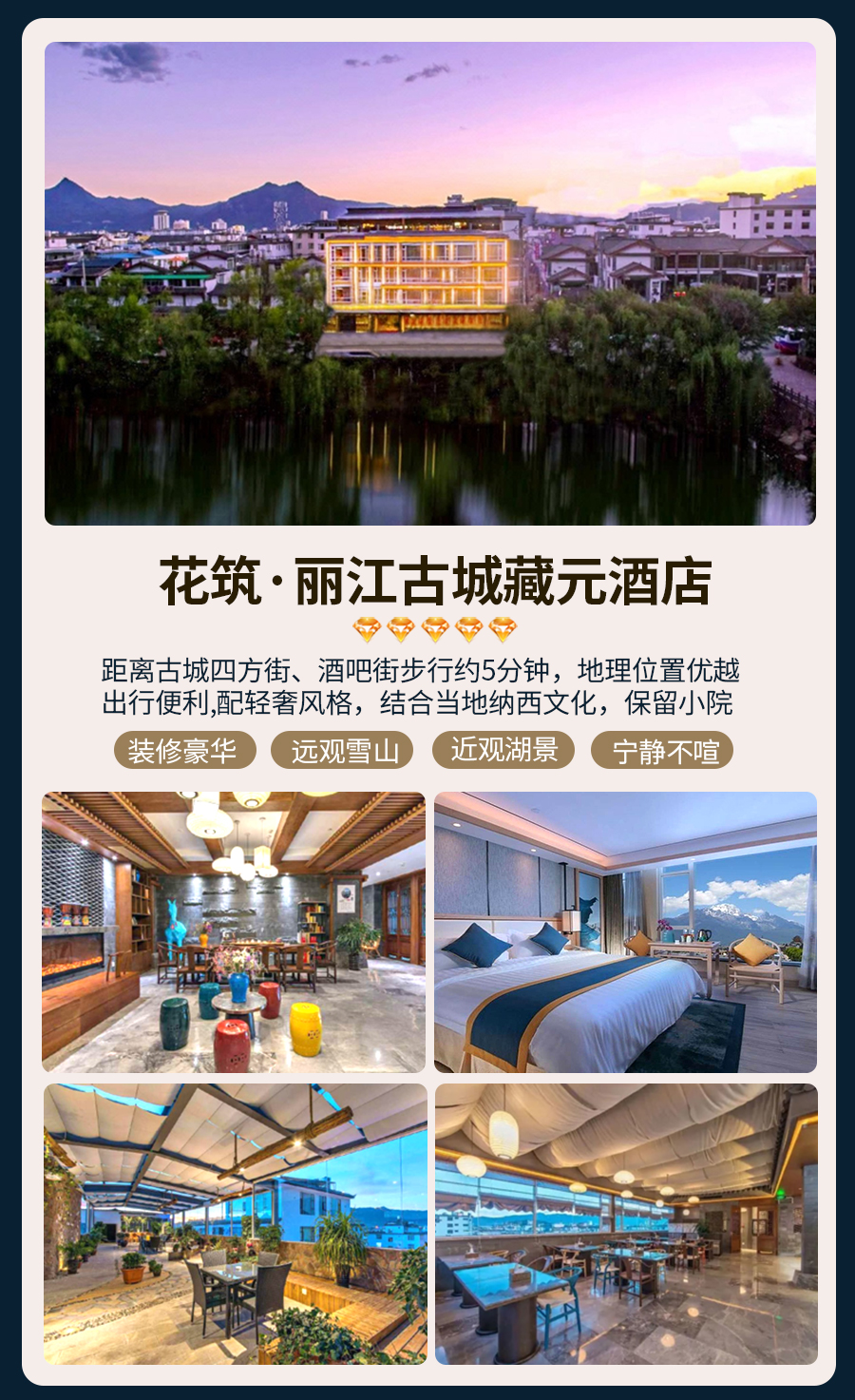 雪山、麗江贈麗水金沙(或印象麗江),滿足身、心、靈的終極體驗!是您帶父母,新婚蜜月游的首選。