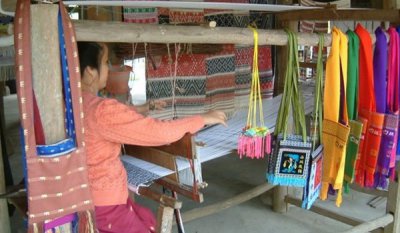 通巴即挎包,以各色手線、棉線織成。包長30余厘米,寬20余厘米。包的正面、背面及側(cè)面織有花卉鳥獸或幾何圖案,包底部綴有彩穗,色澤鮮艷,做工精細(xì),包形小巧,民族特點(diǎn)鮮明,